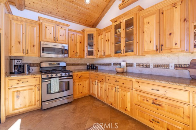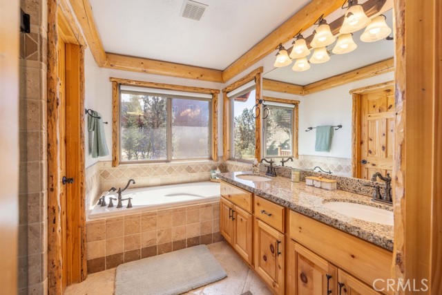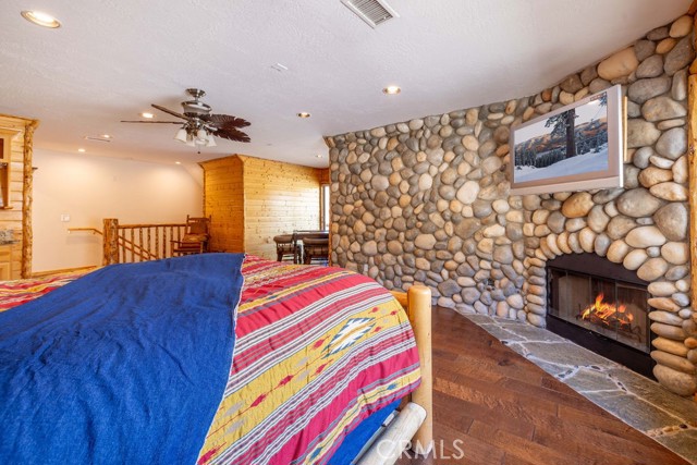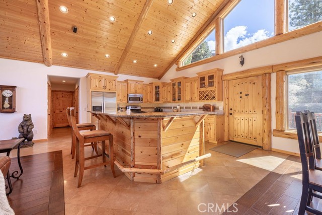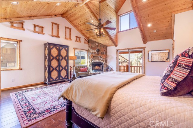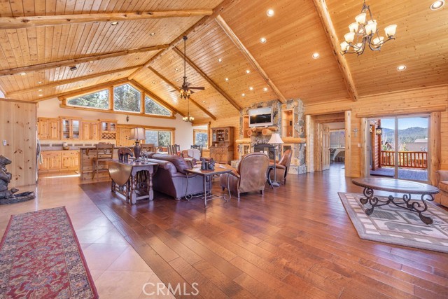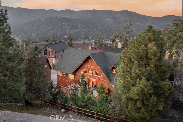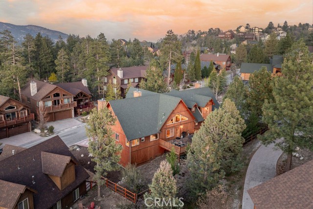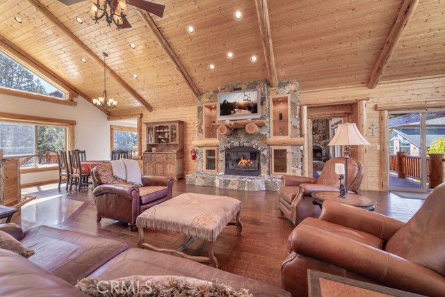 Located in the highly desirable Castle Glen Estates neighborhood, this 4-bedroom, 3.5-bath log-style home offers 2,982 sq ft of mountain living on a 9,000 sq ft lot with partial lake views and a central Big Bear Lake location just around the corner from the lake, forest, paved walking path, boardwalk, ski resorts, shopping, dining, and year-round events at the Convention Center. Built in 2006, the home features a spacious and functional layout highlighted by a stunning great room with soaring vaulted ceilings, expansive windows, and a floor-to-ceiling custom stone fireplace that serves as the focal point of the living space, complemented by rich wood finishes and beautiful log construction throughout. The kitchen opens to the main living area and offers ample cabinetry, counter space, a breakfast bar, a layout ideal for entertaining or hosting. The primary suite includes its own fireplace and generous space with its own front balcony and patio access, while the guest suite also features a fireplace, creating multiple cozy retreat areas within the home. With a total of three fireplaces, the property delivers both comfort and character throughout. Outdoor living is maximized with a front porch, back deck with partial lake views, and three separate balconies that capture the surrounding mountain and neighborhood setting. Additional features include a 3-car garage configuration with a 2-car garage on one side and a separate 1-car garage, providing flexibility for storage, vehicles, or recreational equipment. Castle Glen Estates is known for its quality homes, underground utilities, and one of the most convenient and scenic locations in Big Bear, offering a blend of accessibility, views, and proximity to everything the area has to offer. Whether you’re looking for a full-time home, second home, or investment, this property offers the ideal blend of comfort, character, and mountain living!