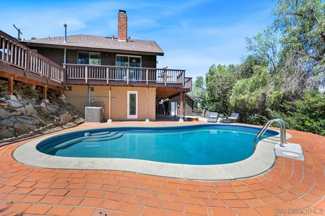 Secluded home offering cozy cabin vibes with stunning mountain views! Voluminous windows throughout bathe this 4-bedroom, 3-bath home in natural light. The entry-level includes 2 bedrooms, a full bathroom, kitchen, and living room—ideal for multi-generational living or added convenience. The spacious primary suite encompasses the entire top level, a loft-style retreat featuring vaulted wood-beamed ceilings with skylights, three closets, and serene panoramic views. The walk-out lower level adds incredible versatility with a full bedroom, bathroom, and spacious recreation room—perfect for guests, extended family, or potential rental income. The lower-level bathroom also functions as a cabana bath with direct pool access, enhancing seamless indoor-outdoor living and entertaining. Enjoy outdoor living at its finest with an expansive wraparound Trex composite deck, sparkling Pebble-Tec pool with newer pump and filter, and a pool safety fence. The grounds are thoughtfully equipped with an automatic sprinkler system, fruit trees, chicken coop, and swing set—offering both functionality and charm. Detached two-car garage with extensive built-in storage beyond the parking bays. Below the garage, a large powered workshop provides exceptional space for projects or hobbies, complemented by an additional storage shed. This property offers quiet living while being close to all conveniences. Additional highlights include a brand new high-efficiency HVAC system, recently painted interior, solar, and potential for an ADU or garage conversion. A full list of upgrades will be provided upon inquiry.