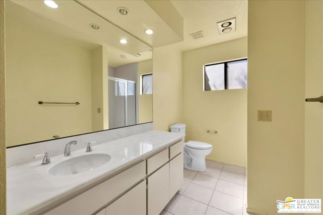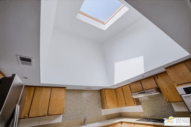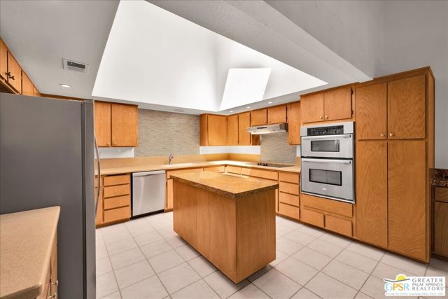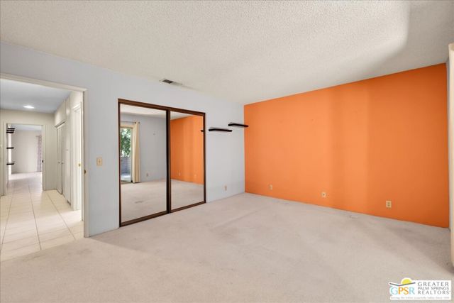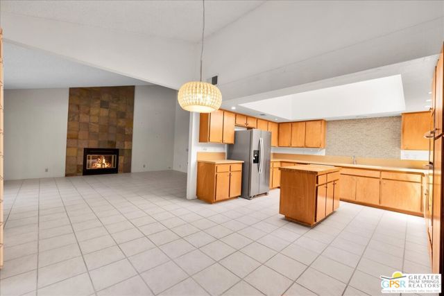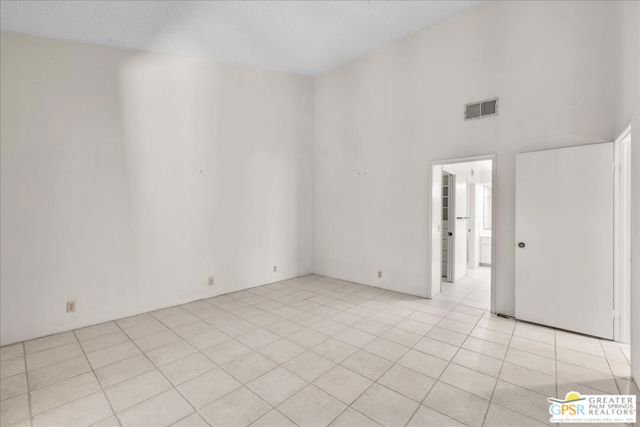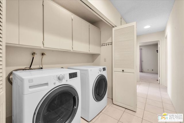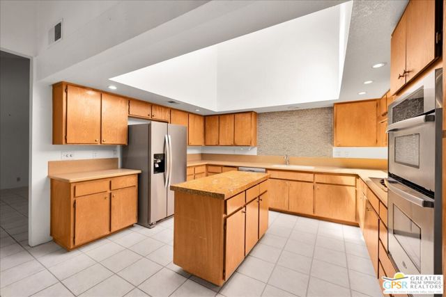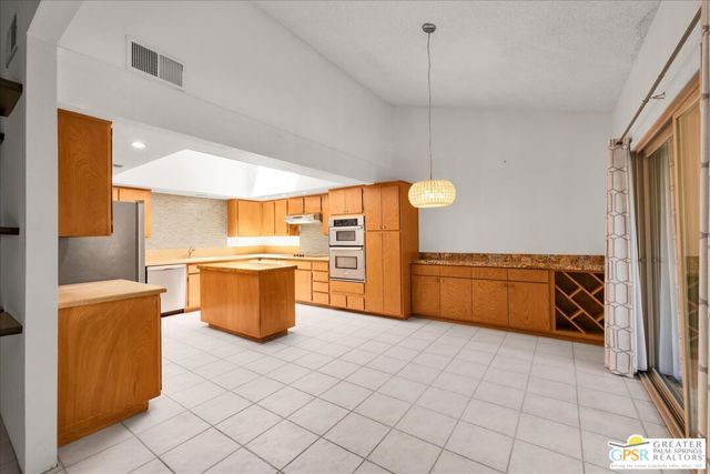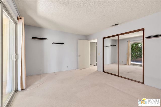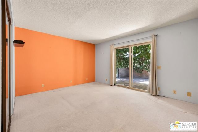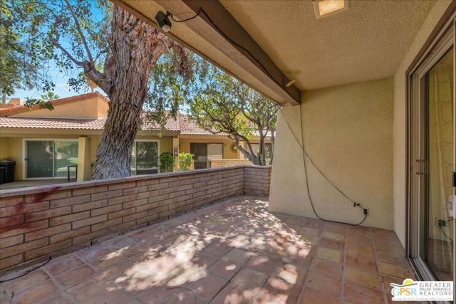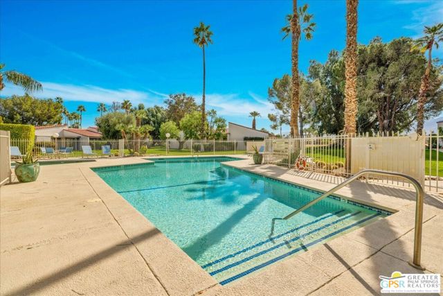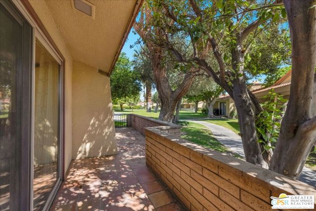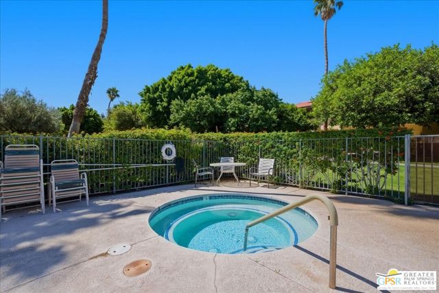 Welcome to Palm Springs Country Cluban iconic gated community designed by renowned mid-century architect William F. Cody where timeless design meets resort-style living. This 2-bedroom, 2-bath end-unit condo offers approximately 1,538 sq ft of interior space and is ideally located in Phase 5, one of the most desirable sections of the community. Being an end unit, it provides added privacy, abundant natural light, and convenient proximity to parking. The home features two spacious private patios, a rare and highly desirable setup. Enjoy stunning San Jacinto Mountain views from the west-facing patio, while the second patio opens to lush garden surroundings creating the perfect indoor-outdoor desert lifestyle. Inside, you will find soaring vaulted ceilings, a gas fireplace with tile surround, and an open-concept living space filled with natural light. The kitchen offers mid-century inspired design elements, including an island, wood cabinetry, stainless steel appliances, and a skylight that brightens the space throughout the day. Large sliding doors from both the living room and kitchen create seamless access to the patios. The primary suite is generously sized with direct patio access, mountain views, dual vanities, and a walk-in closet. A spacious guest bedroom also features patio access, complemented by a well-sized guest bath. Additional features include an in-unit washer and dryer with newer appliances. Palm Springs Country Club offers resort-style amenities, including beautifully landscaped grounds, a sparkling pool, spa, and included services such as water, and trash, all within a peaceful, well-maintained gated setting. This is a successor trust sale and presents a fantastic fixer opportunity to customize and add value within a historically significant mid-century community. With solid bones, a desirable layout, and an unbeatable setting, this unit is ready for your vision. Bring your ideas and make it your own, opportunities like this are rare, and the property is being sold as-is, where-is.