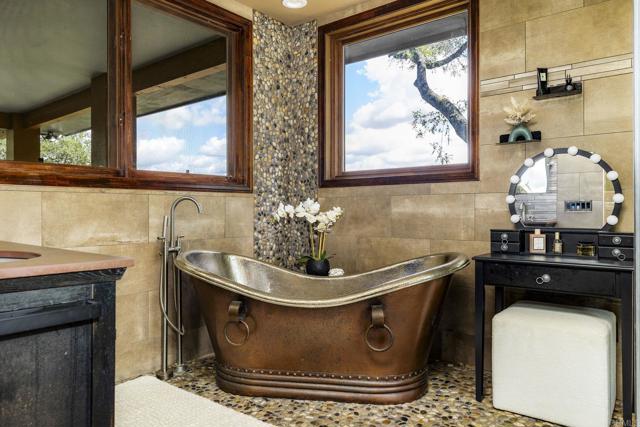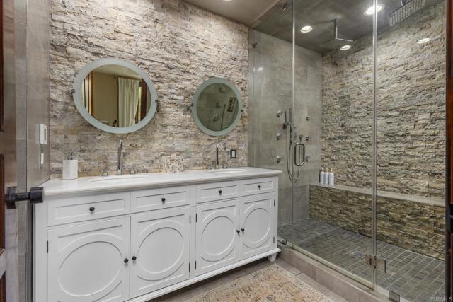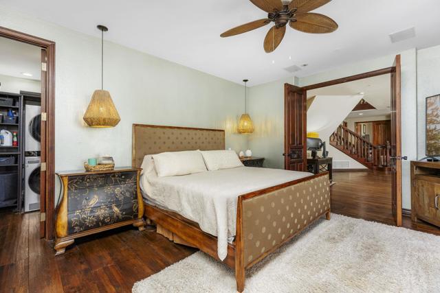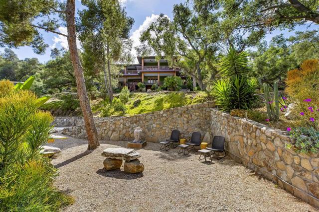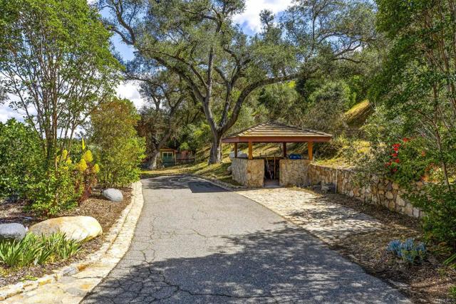 Set on over four serene acres in the rolling hills of Fallbrook, this exceptional multi-unit estate offers a rare blend of privacy, versatility, and refined design. Tucked behind two private gates and surrounded by mature landscaping, the 4.08-acre property feels like a secluded retreat while still providing convenient access to nearby amenities. The main residence is a thoughtfully designed two-story home featuring 3 bedrooms and 3.5 bathrooms, including dual primary suites—one on each level—ideal for multi-generational living or hosting guests in comfort. The expansive floor plan is anchored by a large designer kitchen equipped for both everyday living and entertaining, with generous counter space, custom cabinetry, and seamless flow into the main living areas. Natural light pours in through oversized windows, while multiple access points lead out to sweeping decks on both levels, creating a true indoor-outdoor lifestyle. Under the home is an unfinished basement that can possibly add around 1000 extra sqft. Step outside to experience the home’s standout features: expansive decks that overlook the tranquil grounds, perfect for relaxing or entertaining. The lower deck includes a private plunge pool, offering a refreshing escape with peaceful views of the surrounding landscape. Beyond the main home, the property includes two additional residential units, providing incredible flexibility and income potential. A detached casita offers 2 bedrooms and 1 bathroom, ideal for extended family, guests, or rental opportunities. Additionally, a spacious 2-bedroom, 1-bath apartment sits above an impressive 4,000-square-foot detached warehouse/workshop—perfect for business use, creative projects, car enthusiasts, or large-scale storage. The grounds are equally impressive, featuring a private basketball/tennis court with a waterfall feature, a tranquil zen garden for reflection and relaxation, a fenced garden with raised beds and cages, and wide open spaces that enhance the estate’s sense of peace and seclusion. A private well can support the property with some infrastructure, while solar adds energy efficiency and long-term savings. Multiple private outdoor showers allows for connection to nature. With no HOA restrictions, abundant parking for multiple vehicles, RVs, or equipment, and a layout that supports both residential and professional needs, this property is truly one of a kind. Whether you’re seeking a private family compound, an income-producing investment, or a live-work lifestyle, this Fallbrook estate delivers unmatched opportunity in a picturesque setting.