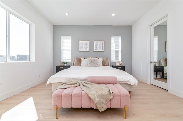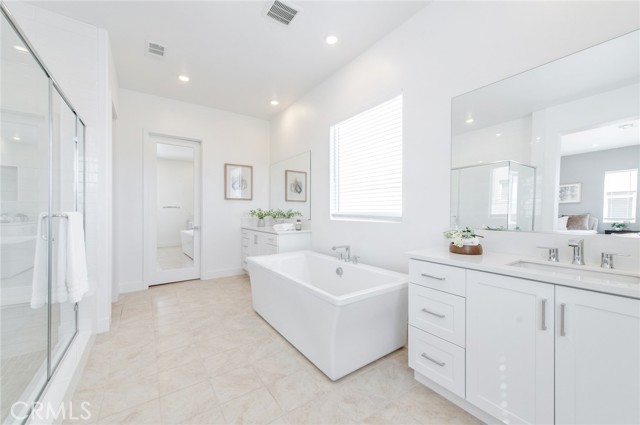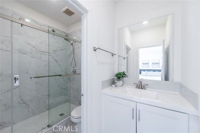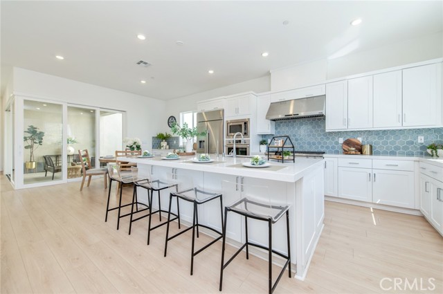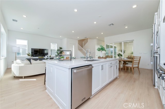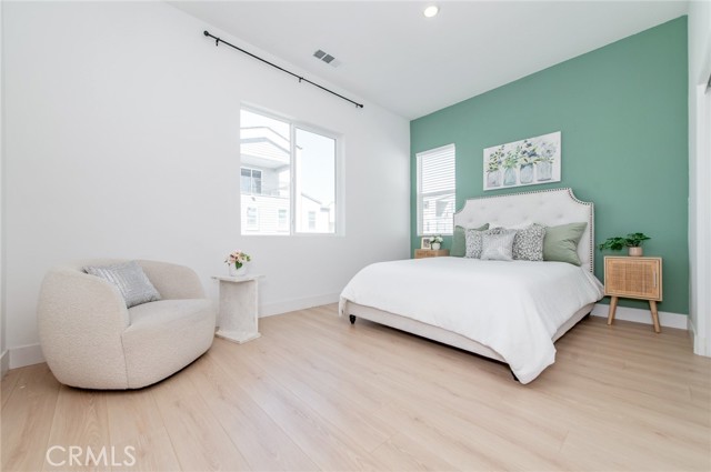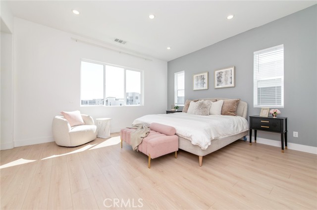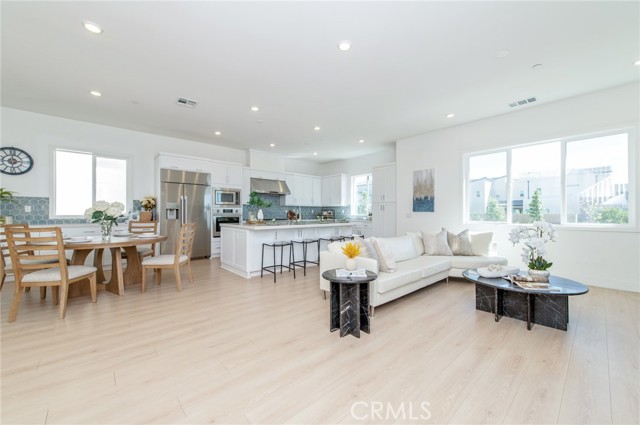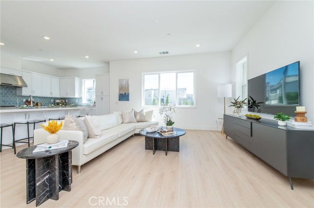 Welcome to this modern home located in the highly desirable Great Park community of Irvine. This spacious residence offers approximately 3,210 square feet of living space and features a functional 6-bedroom, 5-bathroom layout, thoughtfully designed across multiple levels for both comfort and flexibility. The main level showcases an open-concept living area with large windows and sliding glass doors that provide abundant natural light and seamless indoor-outdoor flow. The kitchen is equipped with white cabinetry, a large center island, quartz countertops, stainless steel appliances, and a designer backsplash, ideal for everyday living and entertaining. A ground-floor bedroom with an en-suite bathroom offers added convenience for guests or multi-generational living. The second floor serves as the primary living level, featuring a spacious primary suite with dual vanities, a soaking tub, a separate shower, and ample closet space. An originally open loft area has been thoughtfully configured into an additional enclosed room, enhancing the overall functionality of the layout. Three additional bedrooms share a full bathroom, offering a well-balanced and practical floor plan for everyday living. The third floor provides a versatile and private upper-level retreat. The original bonus room has been arranged as an additional bedroom with a full bathroom, creating a flexible living space that can be used as a guest suite, home office, or multi-purpose area. This level also features direct access to a covered balcony, offering an inviting space with natural light and indoor-outdoor connection. Additional features include recessed lighting, a dedicated laundry area, and an attached garage. Conveniently located near community parks, pools, Irvine Spectrum, shopping, dining, and major freeways.