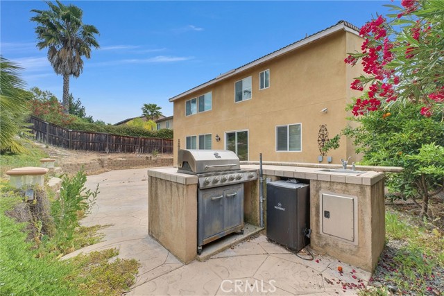 Located in the desirable Redhawk community of Temecula, this beautifully updated home features fresh interior paint, new vinyl flooring downstairs, and new carpeting upstairs, along with a new microwave, dishwasher, and range. The second floor offers 4 spacious bedrooms and a large loft, perfect for entertainment or a flex space. The main floor includes an additional bedroom or office and a full bath. The home boasts 3 full bathrooms, a spacious kitchen with granite countertops and a walk-in pantry, a downstairs laundry room, and both living and family rooms with a cozy fireplace. Step outside to a private backyard featuring a large stamped concrete patio, fruit trees, a built-in BBQ and bar island, and terraced landscaping—ideal for entertaining. The garage includes a dedicated workshop area, perfect for hobbies or extra storage. Additional features include FiOS internet availability and a built-in security system with cameras. Conveniently located near top-rated schools ,just steps from Helen Hunt Jackson Elementary and Great oak high school, parks, shopping, and Redhawk Golf Course—this is a home you don’t want to miss! Virtual Staging.