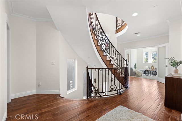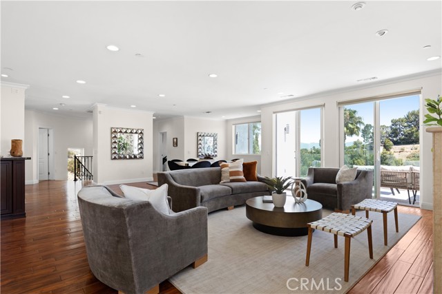 Perched in a quiet hillside neighborhood just south of Ventura Boulevard, this beautifully updated, move-in ready home captures sweeping views of the surrounding hills. Designed for elevated living and effortless entertaining, the top floor serves as the heart of the home, showcasing a spacious open-concept living and dining area that flows seamlessly into a stunning chef’s kitchen. This level is highlighted by a sun-drenched breakfast nook, custom wet bar and oversized windows that flood the space with natural light, while a large balcony with front balcony views and private backyard retreat extend your living space outside for effortless indoor-outdoor living. A private elevator connects all three levels, creating easy access throughout the home. On the second level you’ll find a bonus room and three generously sized ensuite bedrooms, including a luxurious primary suite with dual walk-in closets and a spa-inspired bathroom, complete with a soaking tub, steam shower and dual vanities. The lower level offers exceptional flexibility with an ensuite bedroom, versatile media room and dedicated laundry room. Additional features include high ceilings throughout and a four-car garage with EV charging. This property is ideally located within an excellent school district and just moments away from premier shops and restaurants and 20 minutes over the canyon to Malibu.