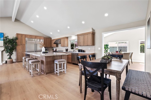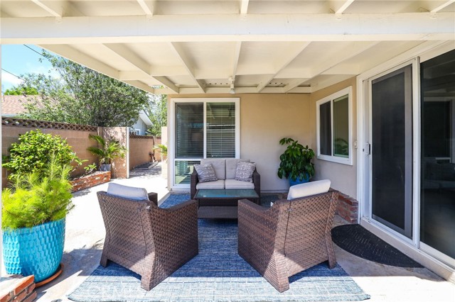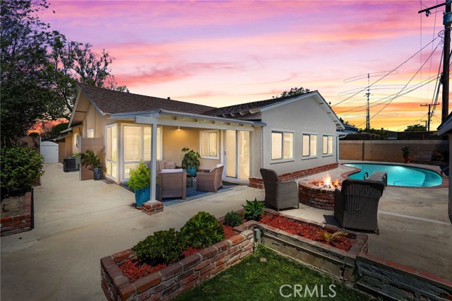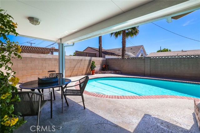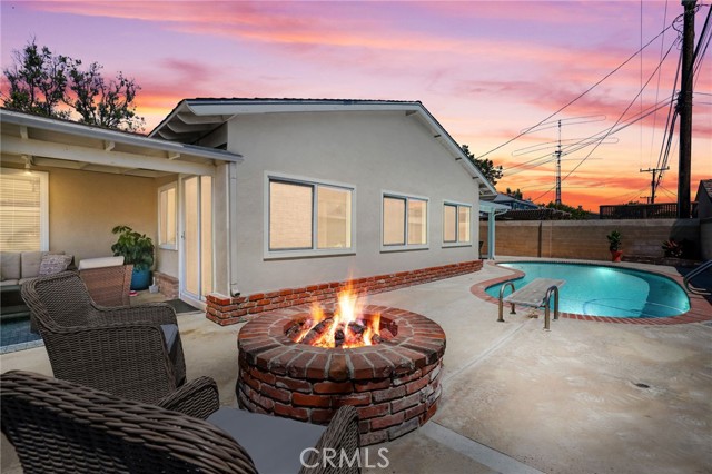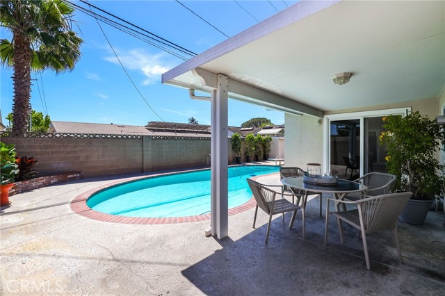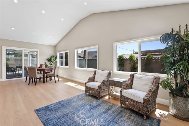 Welcome to the perfect blend of timeless charm and modern California living in one of Rossmoor’s most sought-after neighborhoods. Nestled on a desirable tree-lined street, this beautifully updated Plymouth model offers exceptional curb appeal with an expansive front lawn and charming planters that create a warm and inviting first impression. This thoughtfully upgraded home features a 2-car attached garage and a recently remodeled open-concept kitchen designed for both everyday living and entertaining. The kitchen seamlessly flows into the living room with its stunning vaulted beam ceiling, creating a bright and airy great room feel. High-end finishes include quartz countertops, a large granite-topped island, and a full suite of stainless steel appliances. They are highlighted by an oversized side-by-side refrigerator/freezer, gas range with hood, dishwasher, and ice maker. The living room is anchored by a cozy fireplace with a full-length brick mantle, while a picturesque front window frames views of the lush front yard, filling the space with natural light. Offering four bedrooms, the flexible floorplan includes two guest bedrooms and a versatile office space (originally designed as an optional fourth bedroom), ideal for today’s work-from-home needs. The remodeled primary suite is a true retreat, featuring dual closets, a large window with a built-in window seat overlooking the front yard, and a beautifully updated en-suite bathroom that showcases a new frameless shower, dual sinks, updated mirror, and modern cabinetry. Step outside to a private backyard designed for both relaxation and entertaining, complete with a sparkling pool, two covered patios for year-round enjoyment, and a gas fire pit perfect for evening gatherings. A finished side yard offers additional functionality with a storage shed, providing ample space for organization and convenience. This home perfectly blends classic charm with modern upgrades in a premier Rossmoor location.