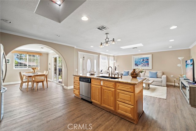 This highly sought after open-concept Cordoba home has no-one above or below and no steps. As you enter the large private gated courtyard, a custom front door with glass inserts greets you. The reconfigured and reimagined EXPANDED kitchen features an open layout with lots of cabinets, plenty of counter space, granite counters and a large island. The kitchen is adjacent to the dining area and an inside laundry closet. The spacious and inviting living room features large windows overlooking the courtyard. Off the living room there is a huge den with built in murphy bed. Both bathrooms have been remodeled and feature stall showers with custom tile. The home features SMOOTH CEILINGS and CENTRAL AIR CONDITIONING AND HEATING. The flooring is beautiful WOOD LOOK style flooring, no carpet! Laguna Woods is one of the most prestigious age 55 and over communities in the US. In Laguna Woods you have access to: bus system around the community & to area shopping, restaurants, medical facilities; 5 pools & 4 hot tubs; golf, tennis, library, 7 clubhouse, a multitude of clubs, 3 fitness centers, theater, horse back riding/stables, garden centers, pickleball basketball, card rooms, billiards, bocce ball & more!