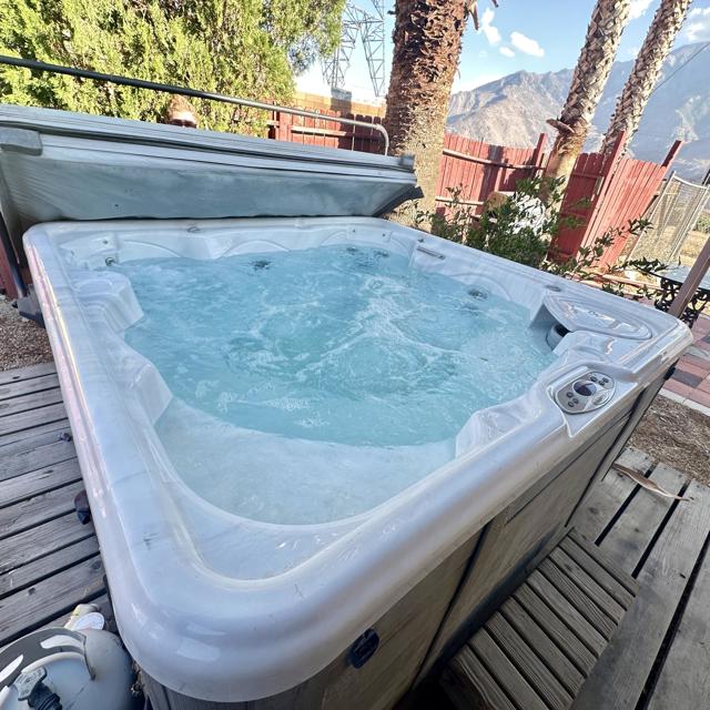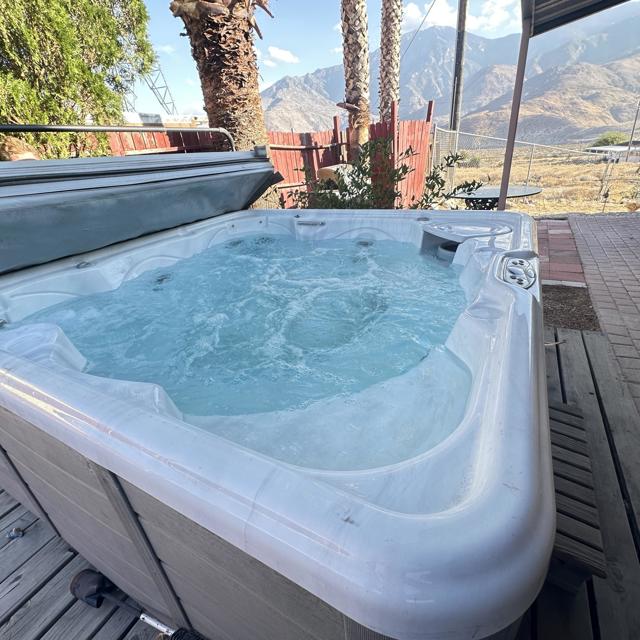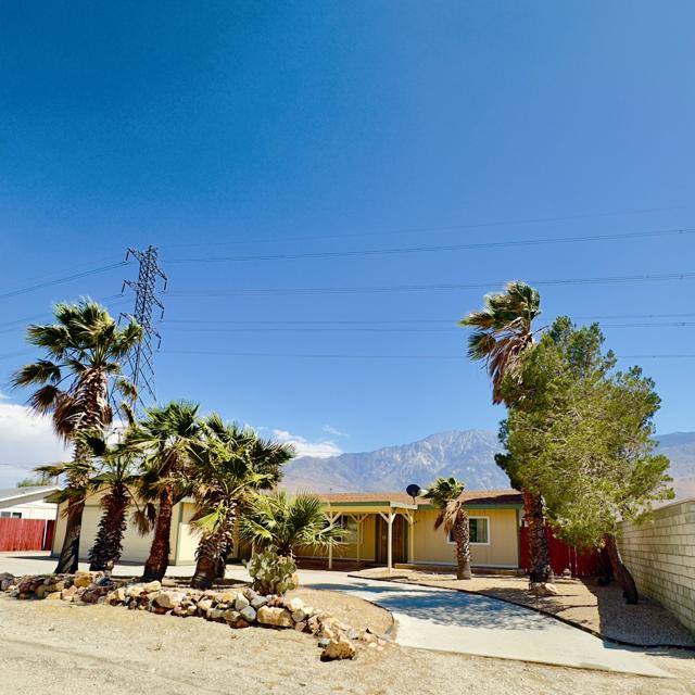 This lovely 1981, home has 4 bedrooms, 2 baths and sits on a 8,276 Sq. Ft. lot. Step through the front door into the living room that features a stone stage area for your private karaoke entertainment. The kitchen host brand new appliances with lots of cabinetry, and a breakfast bar that opens to the dining area. There is an additional bonus room with great mountain views. The master bedroom has a sliding glass door that opens to a covered patio where you are just steps away from the lovely above ground jacuzzi. Enjoy the breathtaking views of the mountains while sipping on your morning coffee or unwinding from the day with an evening drink. The guest bedrooms are on the opposite side of the home. There is a circular driveway, two car attached garage and RV parking. This home is located in the area known as West Palm Springs Village 1. Easy access from the I-10 freeway, exit onto Haugen Lehman Way and follow the paved road to 55561, the home will be on the left hand side. Easy access to downtown Palm Springs, one exit from the East bound I-10 exit Palm Springs. Also conveniently located near the Morongo Outlets & Casino.