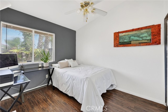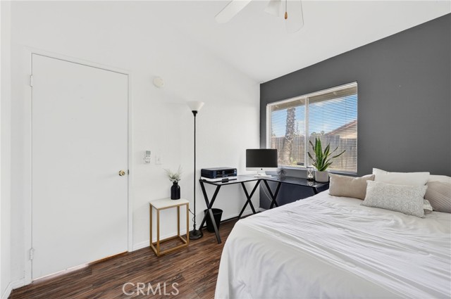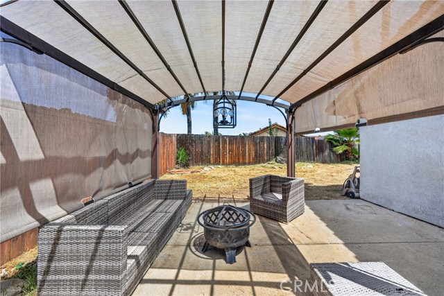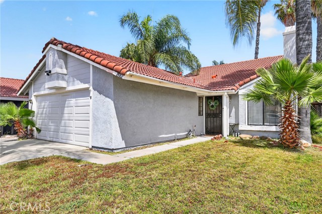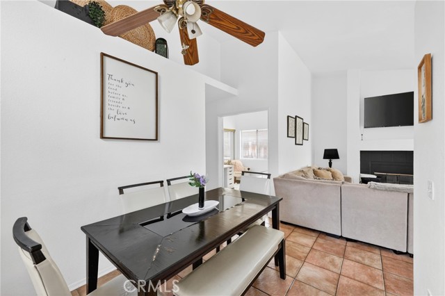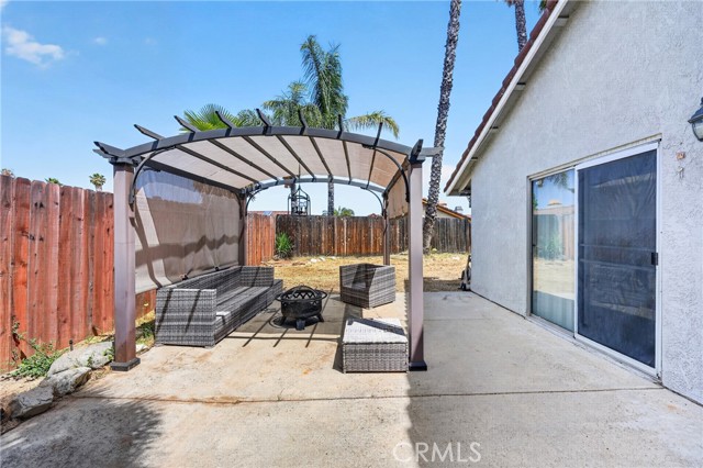 Step inside and feel instantly at home with soaring vaulted ceilings and an abundance of natural light that fills the space. The inviting living room features a charming fireplace, creating a warm and cozy setting perfect for relaxing or entertaining guests. Just beyond, you’ll find a comfortable dining area that flows seamlessly into the kitchen. From the kitchen, a sliding glass door opens to the backyard, where a pergola provides the perfect amount of shade—ideal for outdoor dining, barbecues, or simply unwinding. This indoor-outdoor connection creates a space you’ll love enjoying year-round. The thoughtfully designed layout offers privacy, with two bedrooms located on one side of the hallway and the primary suite on the other. The guest bathroom is bright and airy thanks to a skylight, while the primary suite features its own sliding door with direct access to the backyard. Outside, the spacious yard offers plenty of potential—including room to add a pool if desired. Additional highlights include a two-car attached garage and a convenient location just minutes from the 215 and 15 freeways, with shopping, dining, and everyday amenities close by. With a layout that lives larger than its square footage, friendly neighbors, and access to great schools, this home is a wonderful place to settle in and make your own.