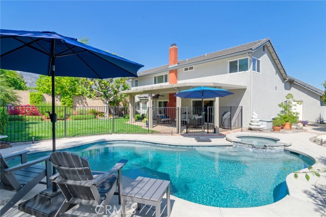 Where luxury living meets the warmth and comfort of home, 2009 N Shorewood Avenue truly stands out. Located in a highly desirable North Upland neighborhood, this beautifully maintained, turnkey residence offers exceptional style, functionality, & charm. From the moment you arrive, the home’s inviting curb appeal & well-established surroundings set the tone. Step inside to soaring ceilings, an open & thoughtfully designed floor plan, & rich engineered dark wood plank flooring that extends throughout most of the main level. A rare and highly sought-after feature, the first-floor primary suite provides convenience and privacy, complete with a spacious walk-in closet and well-appointed en-suite bathroom. The heart of the home is the beautifully remodeled kitchen, featuring recessed lighting, a large garden window, a freestanding island with storage, a Bosch dishwasher, and high-end appliances, including a Viking range. The kitchen flows seamlessly into the dining area, where a stacked stone gas fireplace creates a cozy focal point. Sliding glass doors lead to the backyard, offering picturesque mountain views and an ideal space for indoor-outdoor entertaining. Upstairs, you’ll find two additional bedrooms, a full bathroom, an expansive loft, & a walk-in attic. The versatile loft offers the potential to be converted into a fourth bedroom, while the attic provides valuable additional storage or functional space. Step outside to your private backyard retreat, complete with a large Duralum patio cover featuring recessed lighting and ceiling fans for year-round comfort. The beautifully landscaped yard includes a variety of fruit trees, an avocado tree, a mature magnolia, & vibrant flowering plants. A wrought iron fence separates the yard from the newly remodeled pool /spa, creating both safety and style. Additional highlights include an attached three-car garage with smart MyQ openers, Ring cameras, a video doorbell, and a monitored security system (continued service optional for the new homeowner). Two storage sheds provide added convenience for tools and equipment. Recent upgrades include the roof, HVAC system, interior and exterior paint, a fully remodeled pool/ spa, & the patio cover—making this home truly move-in ready. Ideally located north of the 210 freeway. Close to shopping, dining, and commuter access, this exceptional property offers the perfect blend of luxury, comfort, & everyday convenience. Don’t miss the opportunity to make this stunning home yours.