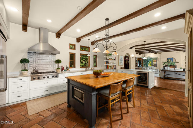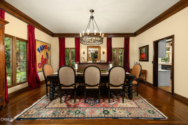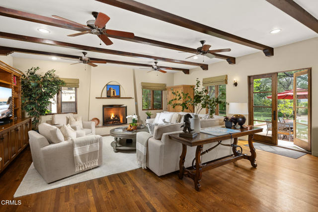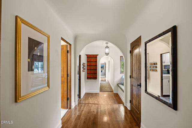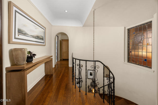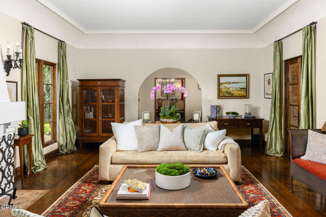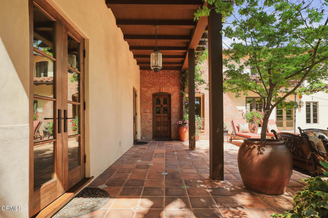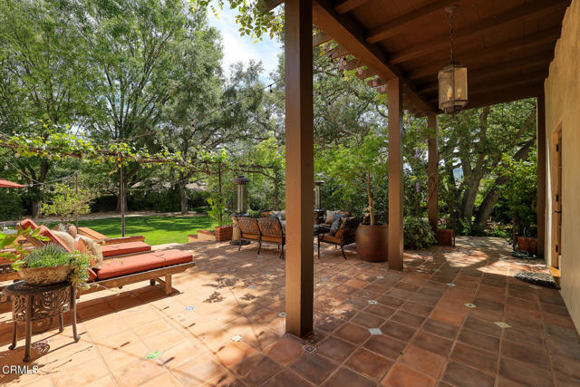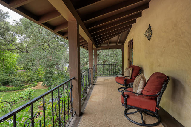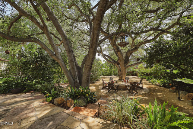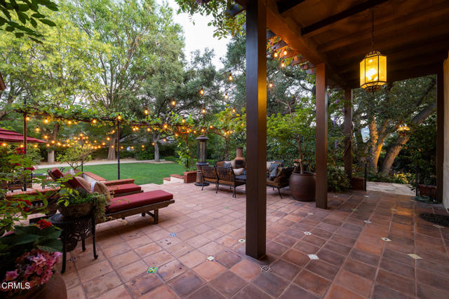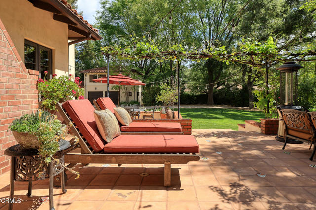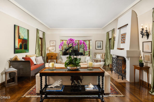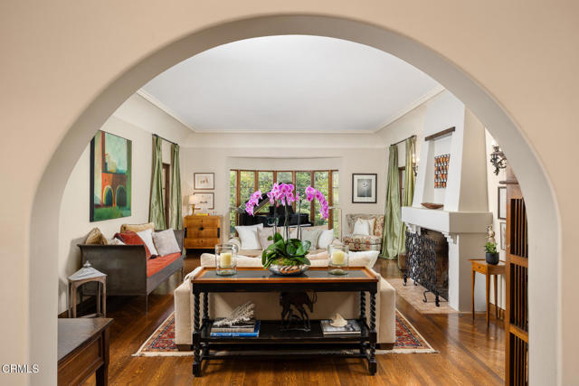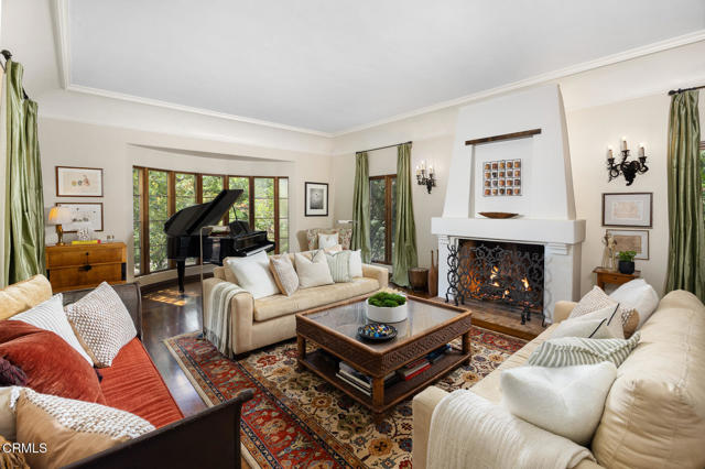 Welcome to 'Casa de Encinas', a masterfully reimagined estate that epitomizes timeless elegance and modern luxury in the coveted La Canada Flintridge. Nestled on over 3/4 of an acre of flat, gated land, this 5,515 sq. ft. home (including guest house), Italian Period Revival masterpiece--originally crafted in 1941 by renowned AIA architect Horatio W. Bishop-offers an unparalleled blend of architectural heritage, contemporary sophistication, and serene privacy. Enveloped by a canopy of oak trees, the estate welcomes you with manicured gardens, a pillared iron gate, and a flagstone path that winds past a tranquil fountain to the grand covered entry. The home's striking facade and commanding presence set the tone for the exquisite details within. A seamless marriage of original craftsmanship and modern updates. Hardwood floors lead from the vaulted foyer, where a spiral staircase with oak treads ascends gracefully beneath an original stained-glass window and chandelier. The formal living room with a stately fireplace, soaring ceilings, and French doors framing enchanting garden views. The formal dining room flows effortlessly into the chef's kitchen-A dream space featuring custom cabinetry, grand center island, stone countertops, top-tier appliances, and large pantry. A breakfast bar connects to the cozy yet spacious family room, with a second fireplace, dining nook, and seamless access to the outdoor patio. For work or leisure, the main level offers a light-filled office/library or bedroom, with built-ins and guest bath access, as well as a state-of-the-art private theater, equipped with surround sound and projection. The second-floor hosts three guest bedrooms in addition to a stunning primary suite. The spa-like primary bath boasts a double vanity, soaking tub, oversized shower, and private water closet. Two sets of French doors open to a covered, large balcony overlooking the lush grounds. Two guest rooms share a bath between, the third serviced by a guest bathroom in the hall. Meticulously landscaped grounds evoke the serenity of nearby Descanso Gardens, including multiple sitting patios and a 165-square-foot floral studio with temperature control. Tiled patios invite al fresco dining, and expansive lawn offers endless possibilities. Detached three-car garage, a workshop and a storage room. Above it, a private 624-square-foot guesthouse with a kitchenette, living area, bedroom, and 3/4 bath. A Rare opportunity for a discerning buyer.