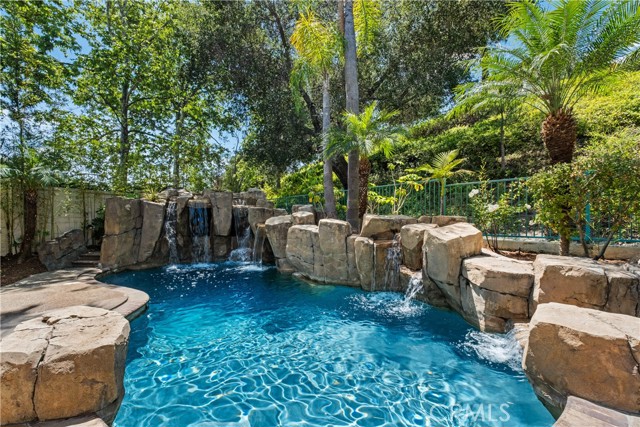 Tucked away on a private cul-de-sac within the exclusive guard-gated enclave of Coto de Caza in Tiara, this exceptional estate offers refined living on an expansive ~0.40-acre lot, 14,000 sf. Spanning approximately 4,000 square feet, the residence showcases a seamless blend of timeless architecture and elevated indoor-outdoor design. Grand in scale yet warm in feel, the home features soaring vaulted ceilings, light-filled interiors, and elegant formal spaces complemented by a spacious great room that opens effortlessly to the heart of the home. A main-level bedroom with private access provides ideal flexibility for guests or a private office with on suite full bath. The primary suite is a true sanctuary, complete with a private balcony and a spa-inspired bath, jacuzzi tub, a sitting area with dual sided fireplace, 2 walk-in closets while secondary bedrooms offer generous proportions and comfort. Two additional oversized bedrooms share a large bathroom. Designed for both relaxation and entertaining, the resort-style backyard is a standout—featuring a dramatic rock pool and spa with cascading waterfalls, built-in BBQ, and expansive grounds that offer rare privacy and space. Set within one of Orange County’s most coveted communities, residents enjoy access to miles of scenic trails, equestrian amenities, and optional membership to the prestigious Coto de Caza Golf & Racquet Club which is in walking distance. Award Winning Schools are near by. Resort Living ! A rare offering combining scale, setting, and lifestyle.