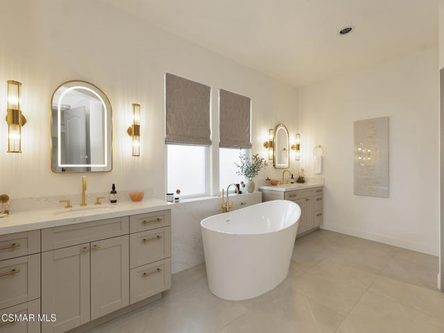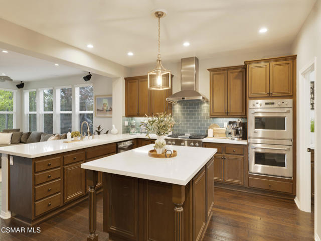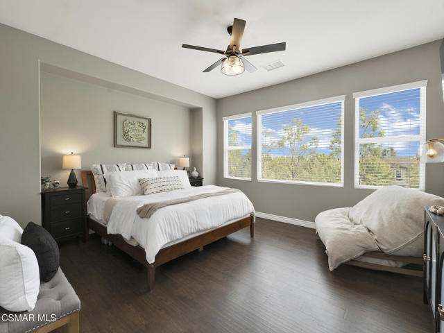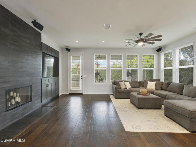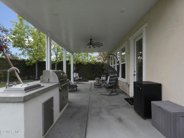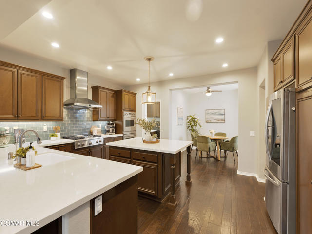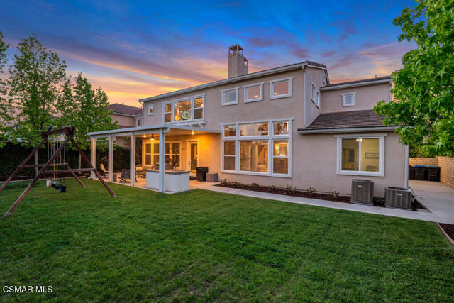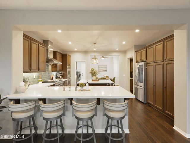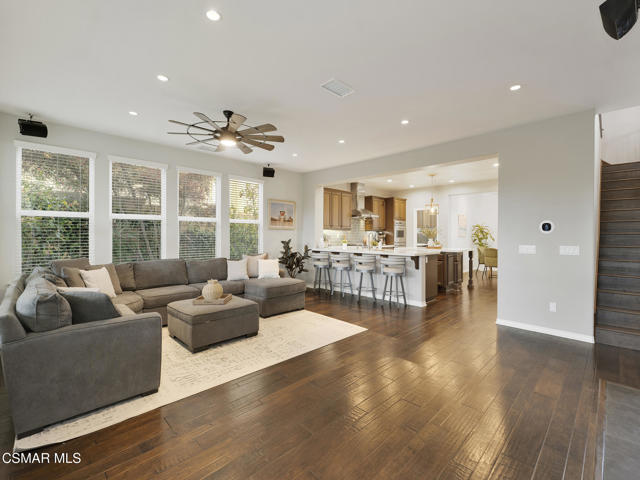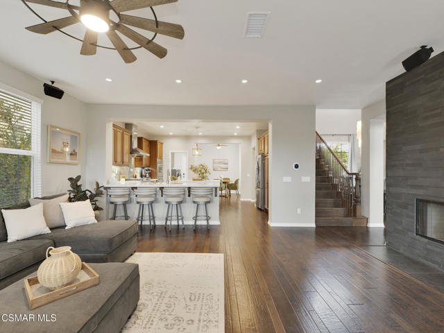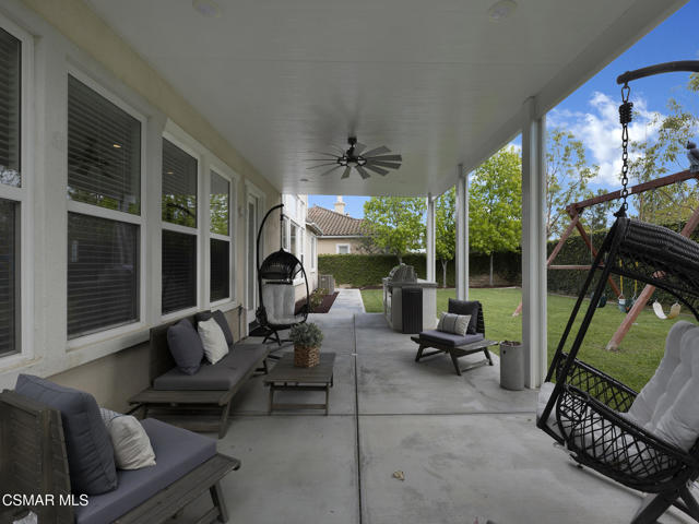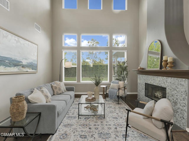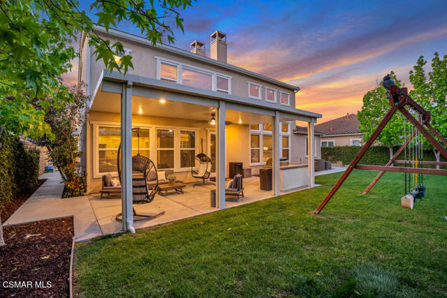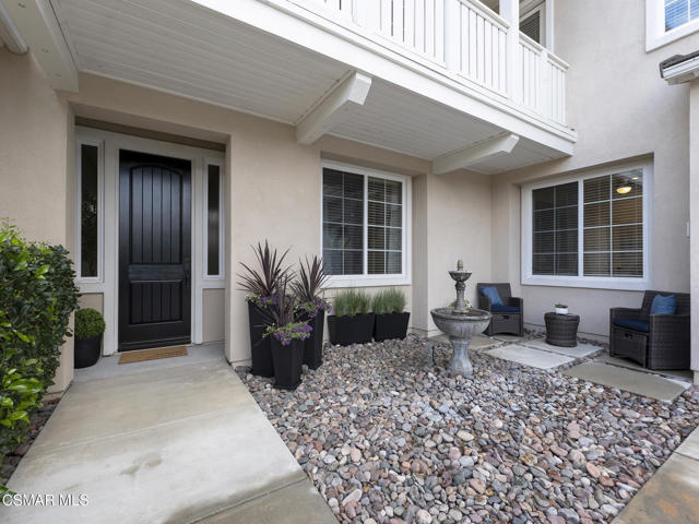 ELEGANT. EXPANSIVE. THOUGHTFULLY DESIGNED.Welcome to refined living in the gated enclave of Moorpark Highlands, where space, sophistication, and comfort come together seamlessly. Offering 3,886 SQ FT, 5 BEDROOMS, and 4.5 BATHS, this exceptional residence is designed for both grand entertaining and everyday enjoyment.At the heart of the home, an OPEN-CONCEPT CHEF'S KITCHEN shines with a professional-grade stove, DOUBLE OVENS, oversized center island, and rich wood cabinetry--perfect for gatherings large or small. Two spacious living areas and THREE DISTINCT DINING SPACES create effortless flow and flexibility.The PRIMARY SUITE IS A TRUE RETREAT, featuring a large custom walk-in closet and a FULLY REMODELED SPA-INSPIRED BATH, rebuilt from the ground up with custom vanities, air tub, RED LIGHT THERAPY, elegant gold fixtures, and serene neutral tones. Three additional EN-SUITE BEDROOMS, including a desirable MAIN-LEVEL SUITE, offer comfort and privacy for family and guests. Enjoy peaceful moments on the elevated balcony with local views--ideal for morning coffee or sunset unwinding.Thoughtful upgrades include OWNED SOLAR, dual heat-pump HVAC systems with UV-light carbon filtration and new ducting, WHOLE-HOUSE WATER FILTRATION, Blink security 4-camera system, and more. Outdoor living impresses with a COVERED PATIO, built-in gas grill, and lush landscaping. A THREE-CAR GARAGE (double bay plus separate single bay) adds exceptional flexibility.Residents enjoy a PRIVATE COMMUNITY POOL & SPA, all just minutes from Moorpark's charming Main Street, boutique shopping, and notable dining.