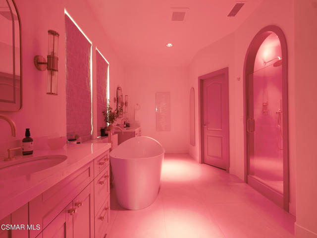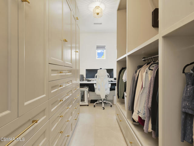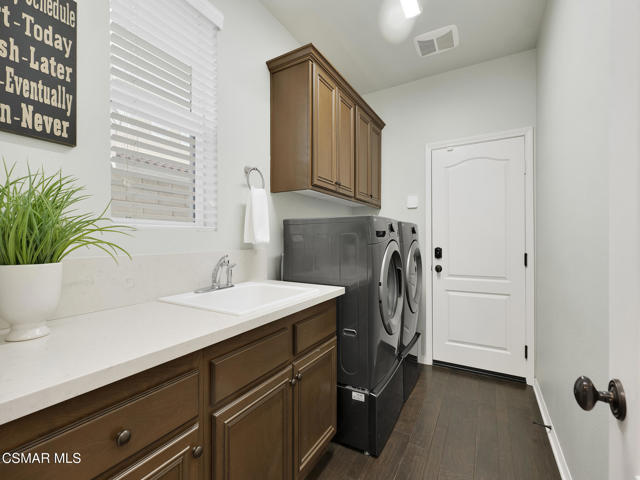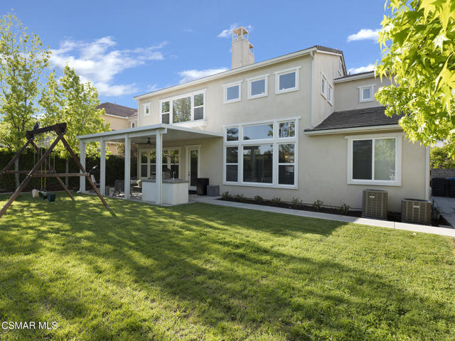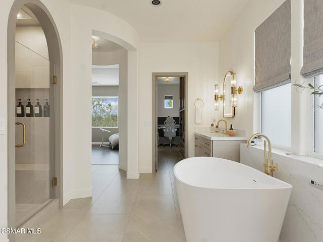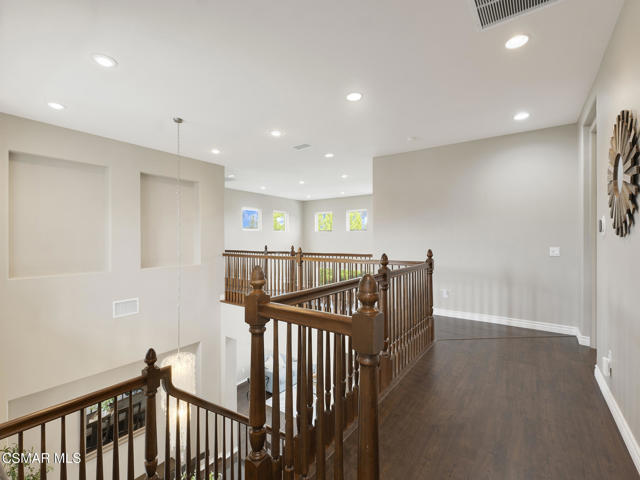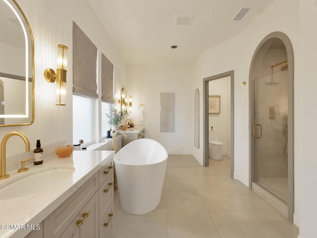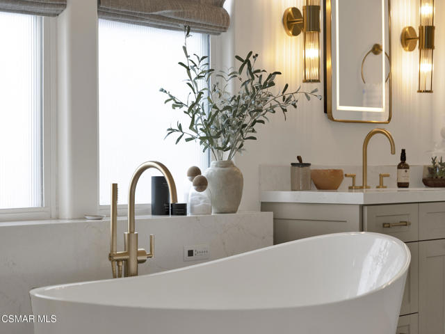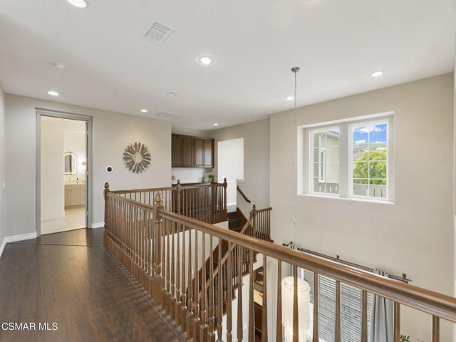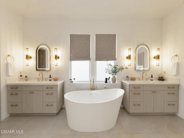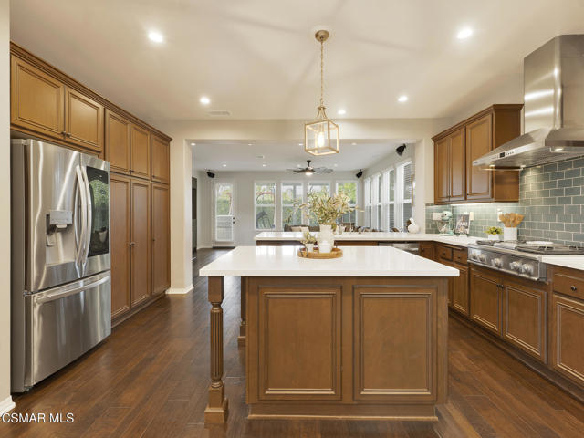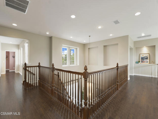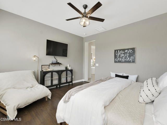 ELEGANT. EXPANSIVE. THOUGHTFULLY DESIGNED.Welcome to refined living in the gated enclave of Moorpark Highlands, where space, sophistication, and comfort come together seamlessly. Offering 3,886 SQ FT, 5 BEDROOMS, and 4.5 BATHS, this exceptional residence is designed for both grand entertaining and everyday enjoyment.At the heart of the home, an OPEN-CONCEPT CHEF'S KITCHEN shines with a professional-grade stove, DOUBLE OVENS, oversized center island, and rich wood cabinetry--perfect for gatherings large or small. Two spacious living areas and THREE DISTINCT DINING SPACES create effortless flow and flexibility.The PRIMARY SUITE IS A TRUE RETREAT, featuring a large custom walk-in closet and a FULLY REMODELED SPA-INSPIRED BATH, rebuilt from the ground up with custom vanities, air tub, RED LIGHT THERAPY, elegant gold fixtures, and serene neutral tones. Three additional EN-SUITE BEDROOMS, including a desirable MAIN-LEVEL SUITE, offer comfort and privacy for family and guests. Enjoy peaceful moments on the elevated balcony with local views--ideal for morning coffee or sunset unwinding.Thoughtful upgrades include OWNED SOLAR, dual heat-pump HVAC systems with UV-light carbon filtration and new ducting, WHOLE-HOUSE WATER FILTRATION, Blink security 4-camera system, and more. Outdoor living impresses with a COVERED PATIO, built-in gas grill, and lush landscaping. A THREE-CAR GARAGE (double bay plus separate single bay) adds exceptional flexibility.Residents enjoy a PRIVATE COMMUNITY POOL & SPA, all just minutes from Moorpark's charming Main Street, boutique shopping, and notable dining.