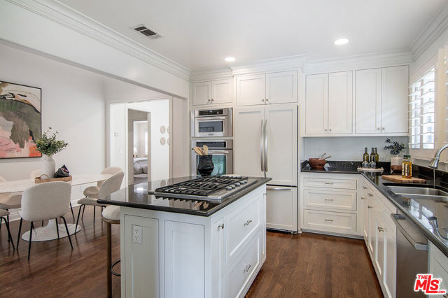 Sophisticated Tudor home ideally located in Hancock Park. The home received an extensively renovation, expansion, and upgraded systems in 2012. Living room with a decorative fireplace. Open kitchen with stainless steel appliances, granite counters, a center island, and a large pantry. Dining area adjacent to the kitchen. Family room with French doors that open to the side and rear yard. Private primary suite with a luxurious bathroom complete with a large spa tub, dual sink vanity and separate shower, plus an expansive walk-in closet. Two additional bedrooms, one with a private bathroom and walk-in closet. The 3rd bedroom and hallway bathroom complete the interior. A two-car garage creates a functional bonus space. Close proximity to the LA Tennis Club, Wilshire Country Club, Larchmont Village, and numerous shops and restaurants. Highly regarded 3rd Street Elementary School. Hancock Park is in a Historic Preservation Overlay Zone (HPOZ).