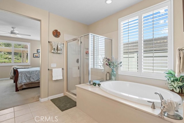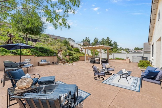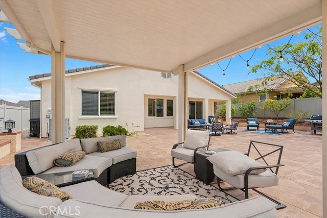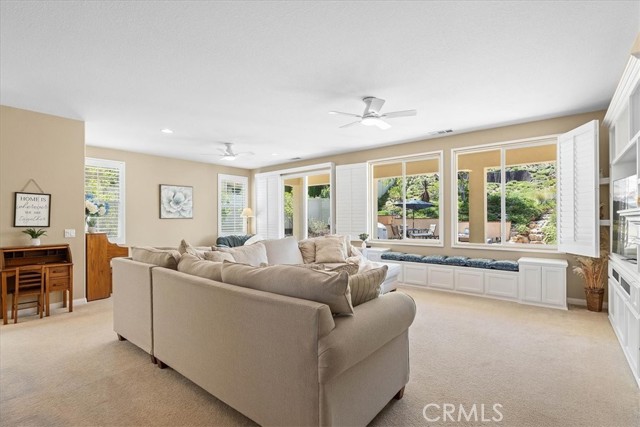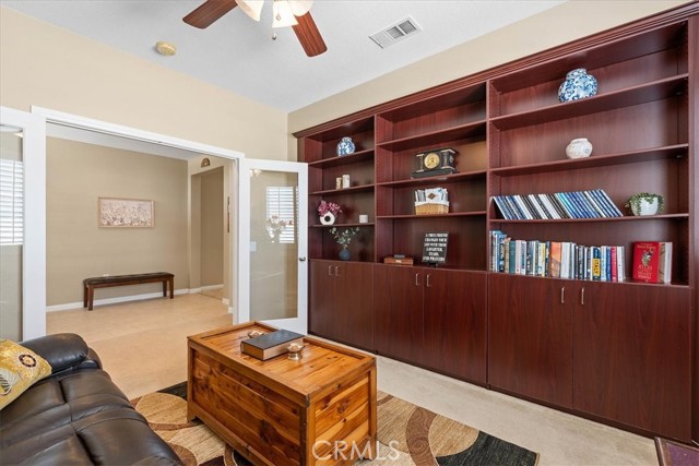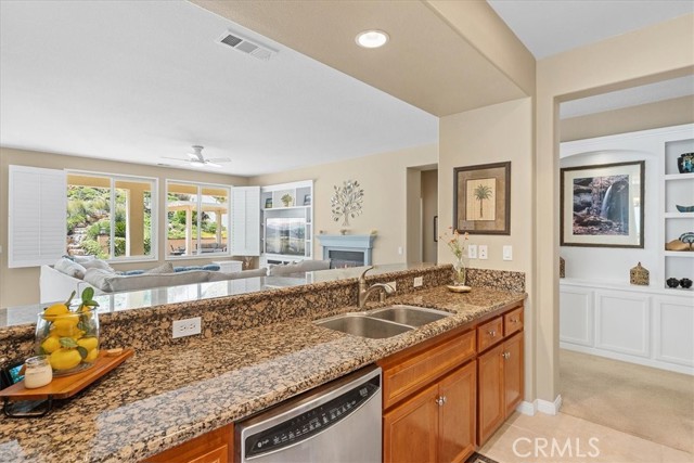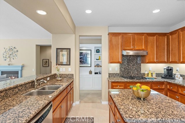 Single-story cul-de-sac home with a backyard designed for true indoor-outdoor living. Located in the gated 55+ community of Four Seasons Beaumont, this Laurel II model offers a bright, open layout with a natural connection to the outdoors and a peaceful waterfall you can see and hear from the main living area. The family room opens to the backyard through a large slider, bringing in natural light and creating an easy flow to the covered patio. The gorgeous built-ins, a cozy fireplace, and a window seat add warmth and give the space a comfortable place to sit and look out to the yard. The kitchen is set up for gathering, with an island, granite counters, a built-in stainless steel range and oven, and a pass-through to the family room that keeps everything connected while still giving you room to cook. Just off the entry, the den with doors and custom built-in bookshelves add functionality and detail to your office or TV room. The secondary bedroom is roomy and open, making it ideal for guests. The primary suite offers a comfortable retreat with a spacious layout, a soaking tub, separate shower, and a generous walk-in closet with built-in organizers—creating a space that works well for both everyday use and relaxing at the end of the day. A separate laundry room with additional storage adds to the everyday functionality of the home. Out back, the covered stucco patio extends the living space, with a separate pergola seating area further into the yard. Stamped concrete, a gentle slope with natural ground cover, and the waterfall feature create a calm, easy setting without a lot of upkeep. Four Seasons is a gated community with a 24-hour attendant and is known for its tree-lined streets, walking trails, and meticulous surroundings. Residents enjoy an indoor pool, two outdoor pools, pickleball courts, lighted tennis courts, two fitness centers, an on-site restaurant, a dog park, and a full calendar of activities that offers a strong sense of community.