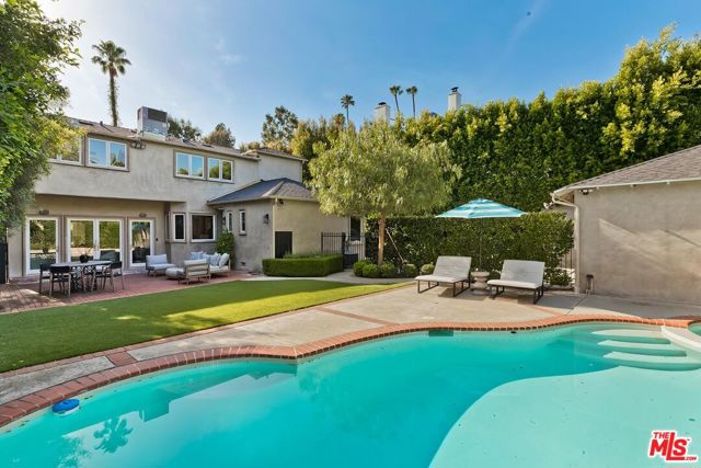 Private Gated Residence nestled just North of Sunset Blvd and Doheny. Large lot with ample off street parking, freshly landscaped grassy front and rear yards, Pool & Spa. Detached Garage, porte cochre, off-street parking for 8+ cars. 3 Bedrooms upstairs plus Bonus Room/Office & 4th Bedroom or Maid Quarter with separate entry and access to laundry room. Formal Dining and large Living Rooms w/ Fireplace. Separate Breakfast Room and Den/Family Room. Hardwood floors. Great for entertaining, perfect family home. Available Furnished or Unfurnished - Inquire for furnished pricing
