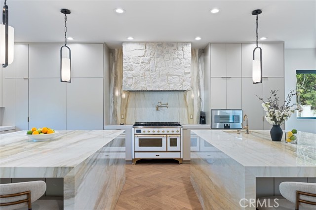 Welcome to private gated community of 17437 Oak Creek Ct., a fully furnished, completely remodeled residence quietly nestled on a private cul-de-sac in one of Encino’s most sought-after and prestigious neighborhoods, Amestoy Estates. Thoughtfully reimagined with custom high-end finishes throughout and fully integrated smart home system, this turnkey home offers an elevated living experience where refined design meets effortless comfort. The interior showcases a seamless blend of sophistication and warmth, with carefully selected materials, modern finishes, and curated furnishings that enhance every space. High ceilings with sun-filled living areas flow beautifully, creating an inviting yet elegant atmosphere ideal for both intimate gatherings and upscale entertaining. The kitchen reflects the home's elevated standard, featuring custom built cabinetry, high end appliances, sleek surfaces, premium finishes, and a layout designed for both practicality and style. Whether hosting guests or enjoying a quiet evening at home, the space feels both luxurious and livable. Bedrooms serve as serene, designer-appointed retreats, offering privacy, comfort, and a calming aesthetic. The fully remodeled bathrooms echo the homes upscale feel, with refined finishes that evoke a spa-like experience. Every detail has been considered, from the quality of the finishes to the balance of form and function. Outdoors, enjoy the fully renovated private backyard with your very own resort-style pool, spa and fire pit. The oasis grounds offer a tranquil extension of the living space—perfect for alfresco dining, relaxing mornings, or evenings under the stars. Step outside to the community tennis court for social hour or a walk in the community park. The private and peaceful cul-de-sac setting enhances the sense of exclusivity while maintaining convenient access to Encino’s premier dining, shopping, and commuter routes. Offered fully furnished and move-in ready, 17437 Oak Creek Ct. presents a rare opportunity to enjoy turnkey luxury living in a prime location. This is a home designed not just to be lived in, but to be experienced.