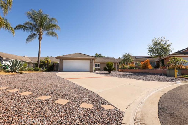 Discover effortless living in this inviting, move-in-ready single-level home tucked away on a quiet cul-de-sac. New flooring throughout. The primary suite is a true retreat, featuring vaulted ceilings and cooling breezes, with an attached newly upgraded bathroom. Also, the additional bathroom has been upgraded with new shower/tub, flooring and countertop. Ceiling fans in dining and primary suite. Entertain with ease in the family room or dining room with a cozy fireplace that flows seamlessly into the kitchen. Step outside to your newly landscaped private backyard oasis, perfect for quiet mornings or weekend hosting. Additionally the garage is equipped with overhead storage and attached cabinets for tool placement, etc., This home is located near the beautiful Guajome Park, the San Luis Rey bike trail and other beautiful local hiking trails close by and minutes to the beach. Close to freeways 5, 15, 78 and 76. This is a must see!!!!!!
