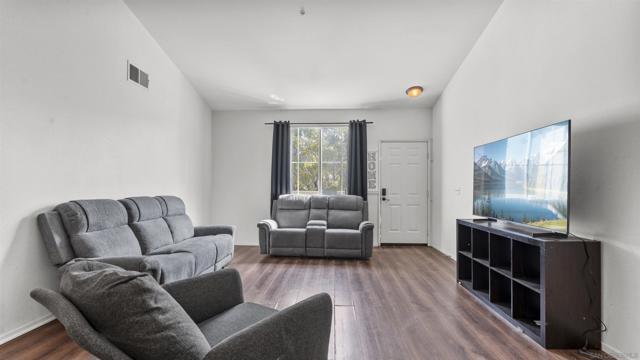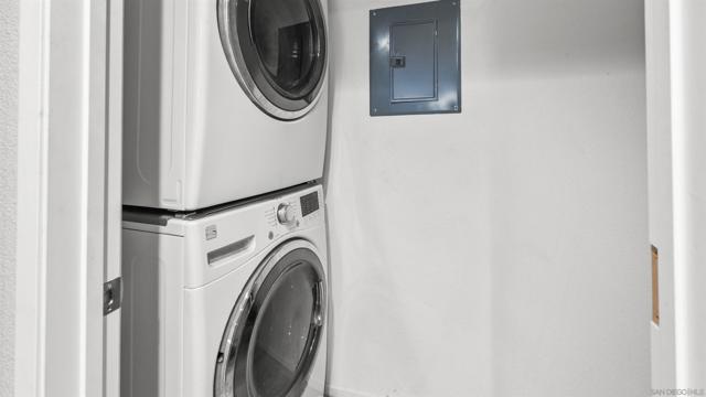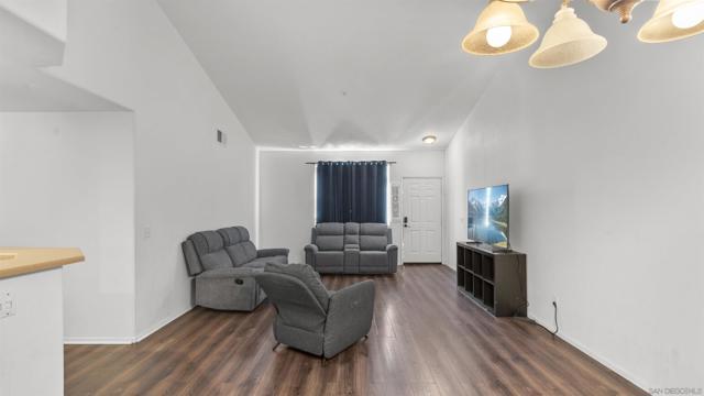 Welcome to 1890 Chambery Pl, Otay Ranch, Chula Vista! This stunning top-floor condominium features 3 spacious bedrooms and 2 stylish bathrooms within a generous 1,315 sq ft layout, combining comfort and contemporary style. Step inside to discover an open layout with soaring vaulted ceilings, filling the space with natural light. The fresh laminate flooring in common areas seamlessly complements the cozy carpeting in the bedrooms. The kitchen is a culinary enthusiast's dream, adorned with elegant travertine tiles, ample cabinet space, and essential appliances, including a sleek stove, refrigerator, dishwasher, and built-in microwave. A stackable washer/dryer is conveniently tucked away in a dedicated nook. Retreat to the primary suite, offering a walk-in closet and a private bath, along with a cozy workspace ideal for remote work. The second bedroom grants direct access to a well-appointed shared bathroom featuring tasteful travertine finishes. Enjoy outdoor privacy with lush trees surrounding your top-floor unit, along with a private storage closet and a charming porch, perfect for morning coffee or evening relaxation. As part of a vibrant HOA community, you'll have access to a clubhouse, sparkling pool, and a fully equipped gym, promoting a balanced lifestyle of fitness and social engagement. With quick access to the 125 and 805 freeways, you're just minutes from diverse restaurants, shopping centers, and the bustling Otay Ranch Town Center. This condo is not just a home; it’s a lifestyle waiting for you!