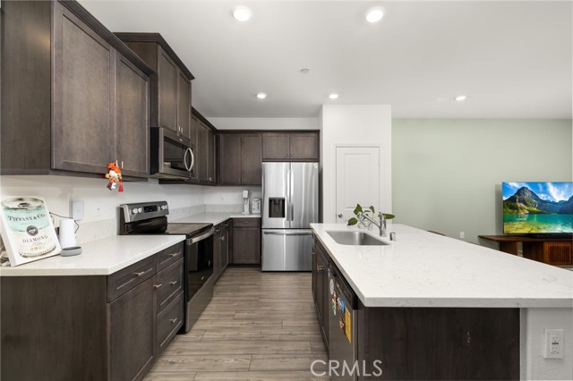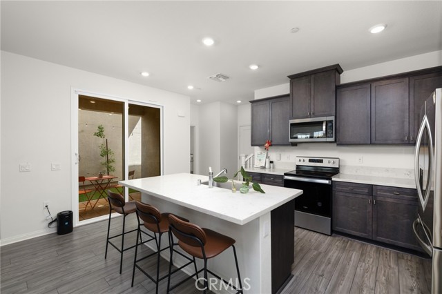 Welcome to 16181 E. Preserve Loop, a beautiful well-maintained detached condo in the highly desirable Monet community at the Preserve Community of Chino. This bright and open floor plan offers comfortable living with a spacious layout ideal for everyday living and entertaining. The floor plan offers a great open 1,820 sq/ft floor plan with 9-ft celling. Four-bedroom home offers a thoughtfully designed living space. Rate for its size, the four-bedroom configuration provides flexibility not commonly found in comparable homes. The first-floor features upgraded wood flooring, and the kitchen pairs quartz countertops with modern dark cabinetry for a clean, contemporary finish. Bathrooms on the second floor include dual sinks for added convenience. Outdoors, a covered patio and fully finished backyard create a polished and private setting. The home also includes fully paid solar panels and a 240V EV charging outlet. Residents enjoy resort-style community amenities including a pool and spa, clubhouse and meeting center, pickleball court, BBQ and picnic area, and multiple neighborhood parks.