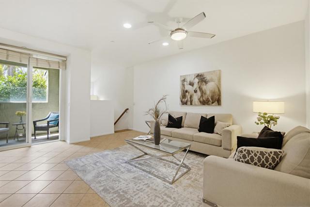 Welcome home to Tribeca. A gorgeous community in the heart of Kearny Mesa. Walk into a great room - open layout. It has a modern kitchen with a dine at counter, that is open to the dining and living room. The space is great for cozy nights at home or entertaining friends. Master bedroom is generously sized with a walk in closet. Stacked laundry closet right off the kitchen. It has a tandem 2 car garage downstairs, with direct access. Enjoy the community pool and spa just in time for Summer. Top it off it's centrally located, get to most of SD within 15 min. It's close to the frwy, great dining and shopping.