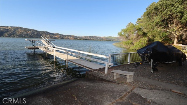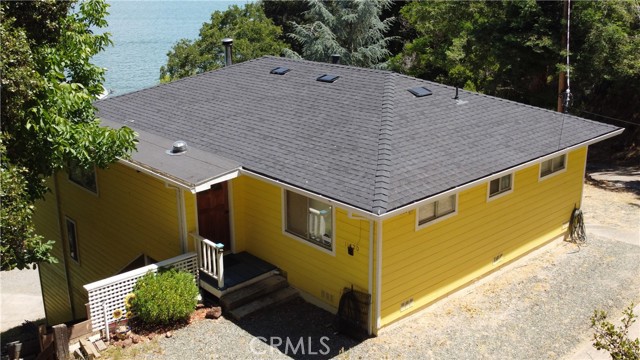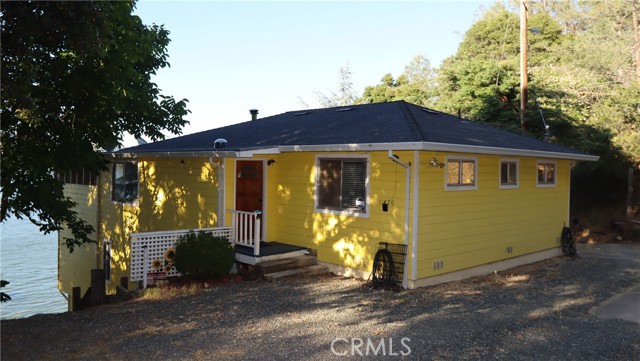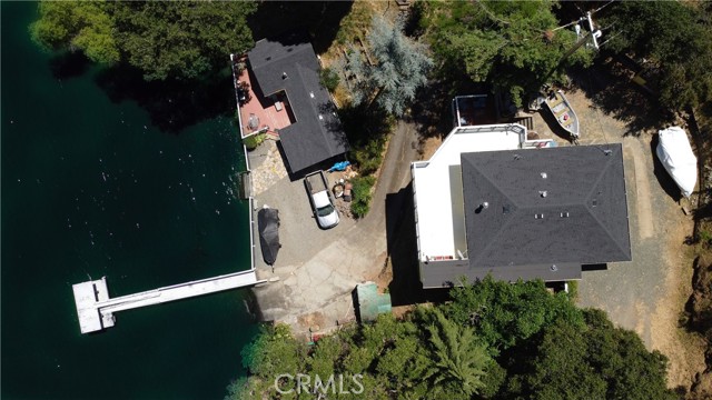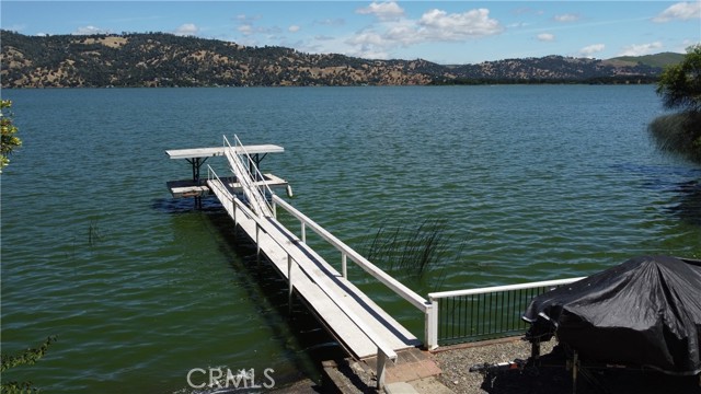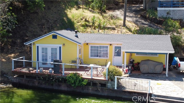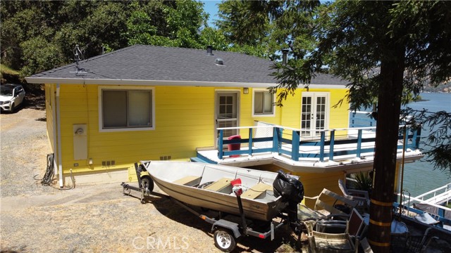 LAKEFRONT WITH TWO HOMES Five bedroom, two bath main home, one bedroom, one bath guest house. Covered dock, boat slip with winch, 100 ft water frontage on a deep water cove with no neighbor on one side. Perfect family-sized vacation getaway or permanent home, with potential for income with separate guest home for either short or long term. Laminate flooring, tile baths, custom concrete counter tops. Wood stove with natural stone backdrop. Family room for games and movies. Wrap around decks opening off the living room, including an outdoor deck bar to take in the spectacular natural location with total seclusion and quiet. This is the place where you can really let go, on your own, or with friends and family. Memories to be made here. Move in ready, wrap around decks. Ideal BNB substantial income property when you're not using it for either or both homes. Brand new roofs on both homes. Catch fish from your own property, or easily get out on the water and explore California's largest natural lake within its borders.