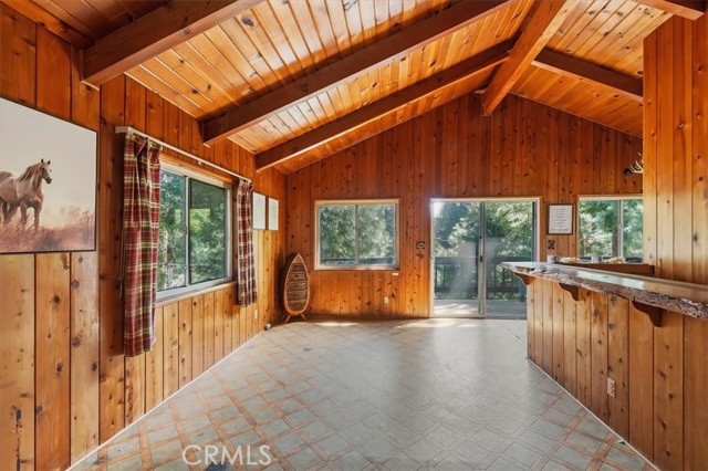 Enjoy the fresh crisp mountain air in this adorable cabin that is priced to sell!! The scent of the pine trees and the ivy lined staircase invite you to explore the inside of this two-story cabin. You are immediately greeted by a wooden staircase that leads to the spacious and comfortable living room that features a wood burning stove. The cozy kitchen and full bath are also located on the upper level. The bottom level of the home has two bedrooms and a storage and laundry room that is both accessible from the inside and outside of the home. If you are looking for a relaxing getaway for the weekends or for your first home, the wait is over! This home is just a short 20-minute drive from San Bernardino and located minutes from shopping, dining and Lake Gregory. Start enjoying the peaceful serenity of the mountain area while sipping on your coffee from you front patio now!