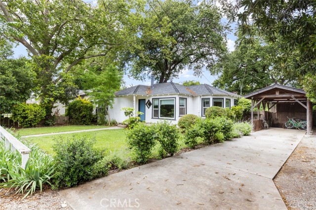 Darling and spacious Chico Charmer just blocks from Enloe and in walking distance to restaurants, farmer's market and all of Chico's best amenities! This beautiful home includes 2 bedrooms and 1256 sqft of living space with arched doorways, curved walls and beautiful hardwood flooring throughout, offering timeless charm not found in most homes. Classic features like built-ins, a breakfast nook, and bookshelves seamlessly blend all of the living spaces together and offer so much character. The bedrooms are both generously sized, (one was even extended out by a previous owner) with large windows bringing in an abundance of light. Additional features include a cozy and bright kitchen with butcher block countertops, matching stainless steal appliances and a darling breakfast nook. Additionally there are ceiling fans, dual pane windows and an attached laundry room. Outside you'll find beautiful mature trees, a huge yard for gardening, playing or entertaining. There is also a shed for all your garden tools and a large carport for parking that comes with EV charger setup. Make your appointment today to see this lovely Chico Charmer!