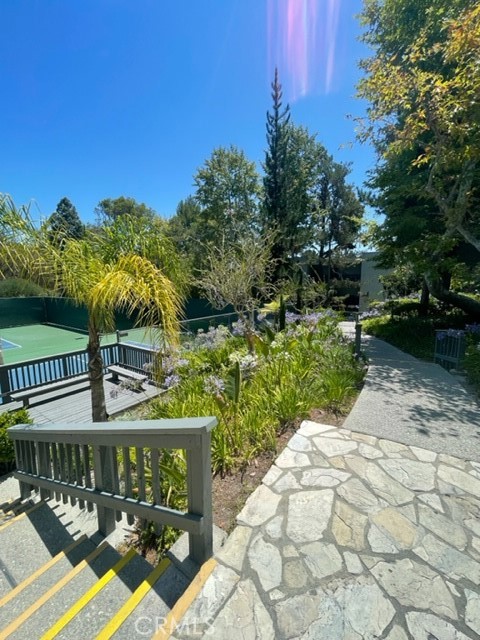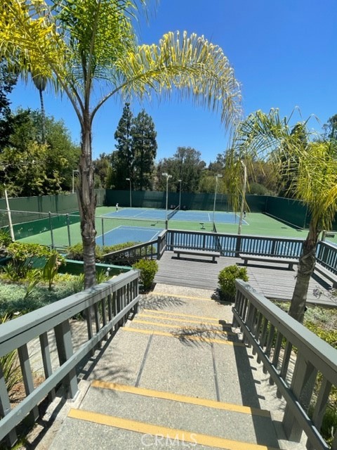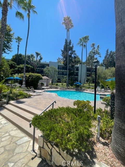 Welcome to the Estates Community with beautiful landscaping. Great location. Easy access to freeway. Centrally close to shopping, restaurant,theaters and the most popular South Coast Botanical garden. The community offers a pool,spa,tennis court,clubhouse with gym,sauna, jacuzzi guest parking spot. This top floor unit, bright,open and airy,overlooks the high picturesque green tree.HOA includes water.Parking space #6!