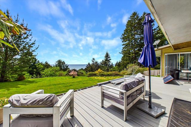 Ocean-view coastal property perched on the bluffs of the Pacific in highly sought-after Trinidad! This 4-bedroom, 2-bath home (including attached mother in law unit) offers breathtaking panoramic ocean views, abundant natural light, and a rare opportunity for flexible living or income potential. Situated on nearly an acre, the property features a spacious deck perfect for taking in sunsets, a quiet end-of-road location, and a serene natural setting. The attached mother in law unit (1 bed/1 bath with separate entrance) is ideal for extended family and/or guests. Updated kitchen and flooring add modern touches, while large windows capture the stunning coastal scenery throughout. Rural utilities (septic, non-city water). A unique blend of privacy, views, and versatility; this is coastal living at its finest.