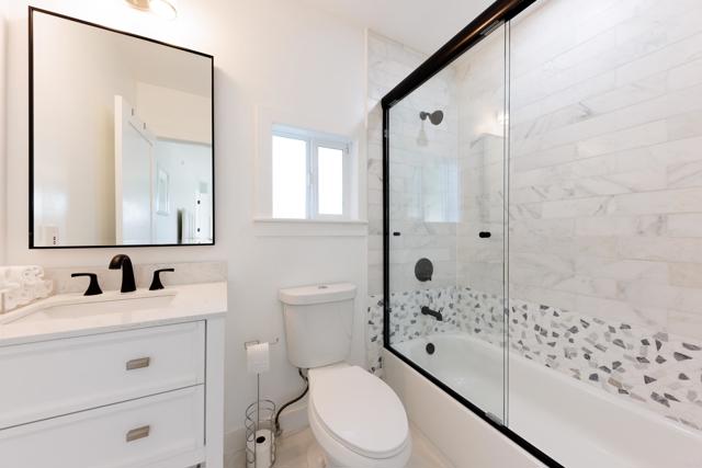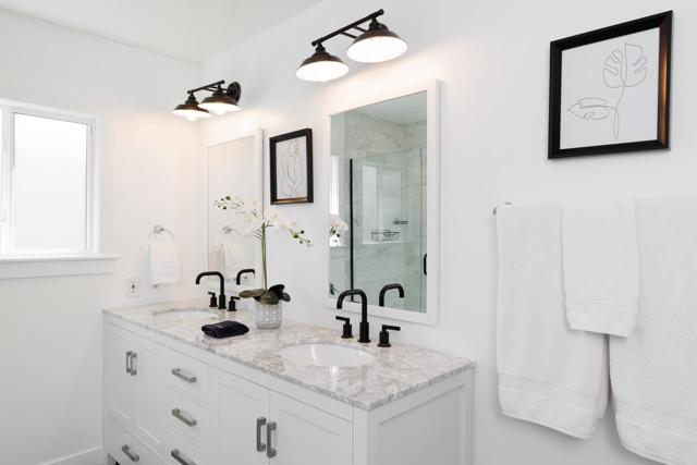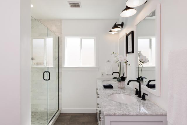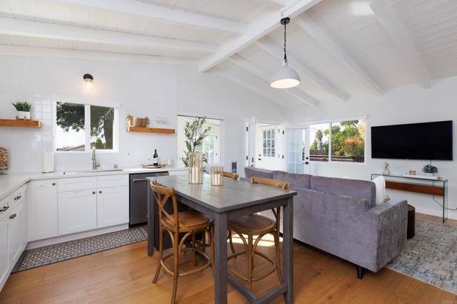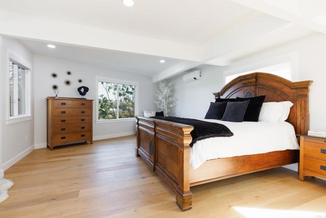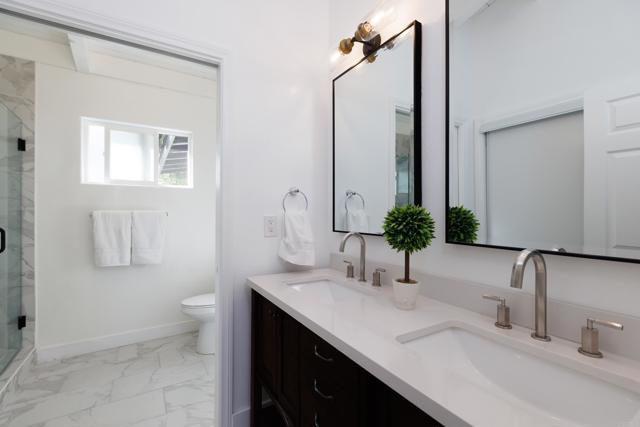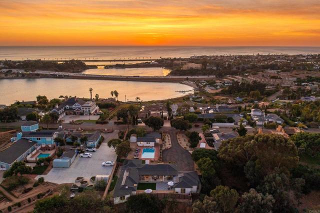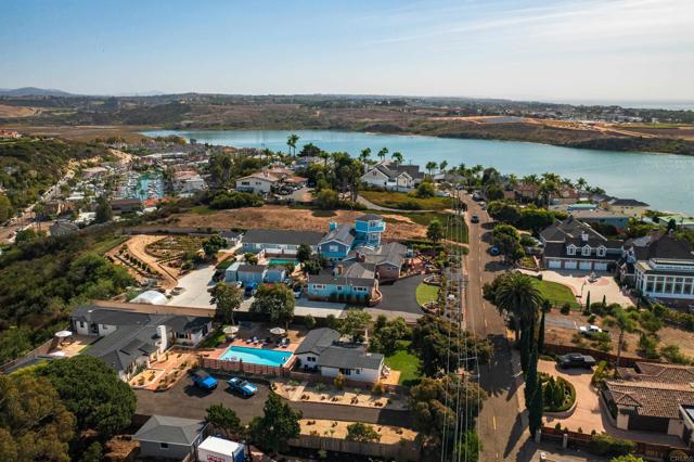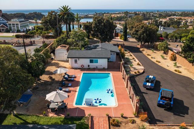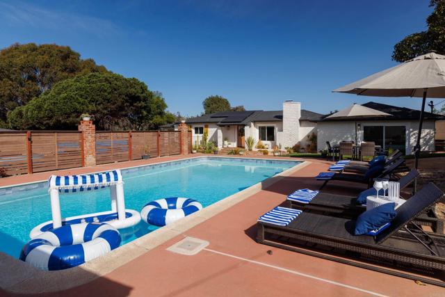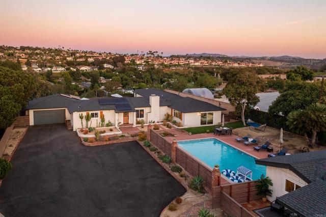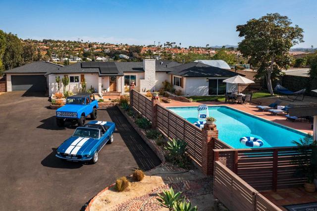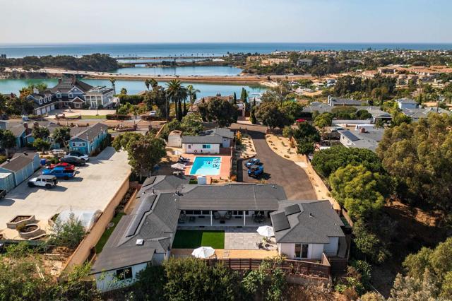 Perched high above the Agua Hedionda Lagoon on one of the most desirable streets of Carlsbad only 1.5 mile walk or bike ride to Tamarack Beach, stands this Chic Modern Coastal Property. Originally built in 1946 and completely renovated, offering two detached homes, including a full 910 sq ft 1 bed/1 bath guest house/ADU with full kitchen, separate laundry hook ups, living room and office or yoga studio. Ocean and Lagoon Views are enjoyed from the kitchen and office as well from the private exclusive yard, large enough for entertaining and gardening, and offers dedicated parking. This is the perfect guest quarters, multi generational or an incredible short term rental opportunity within Carlsbads Short Term permissible zone. The main house exhibits an elegant modern style, open floor plan and indoor out-door living space, featuring 4 bedrooms with en-suite baths, including Jr and Master suites both with their own private entrances on opposite sides of the home. An attached double car garage and an amazing backyard with easterly rolling hill views from a private covered porch and grass space for family and entertaining. A beautiful renovated swimming pool sits between the main house and the guest house allowing for another entertaining area. A new solar system and new tankless water heaters have recently been installed. This estate combines classic charm with modern lifestyle conveniences, offering endless opportunities for income-generating or multi generational mini resort living.