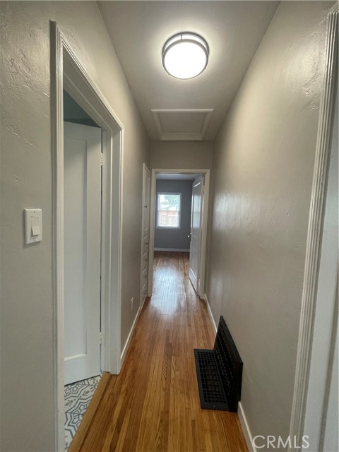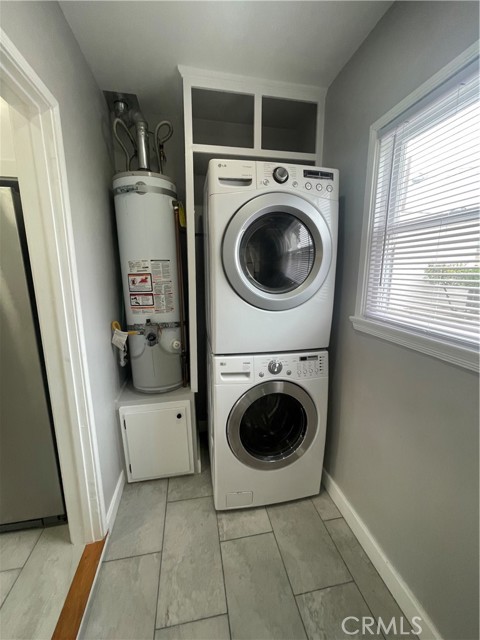 Great location to live in one and rent the other or rent out both. Beautifully remodeled. Hardwood floors, tiled kitchens with stoves, fridges and bathrooms e=remodeled with new vanities, deep soaking tubs. Laundry room in each unit with washers/dryers. Loads of windows. Light and bright. Front unit has faux fireplace and private side yard and parking for 3 cars on newly poured driveway. Back unit has a huge back yard can accommodate an ADU for value add. Private parking off the alley and a garage currently used by the owner for storage items to the units can be converted in an other ADU. All new fencing, and exterior lighting . New SCE panel and sub panels in each unit. Updated plumbing, restored siding new paint last year and drought tolerant yards.